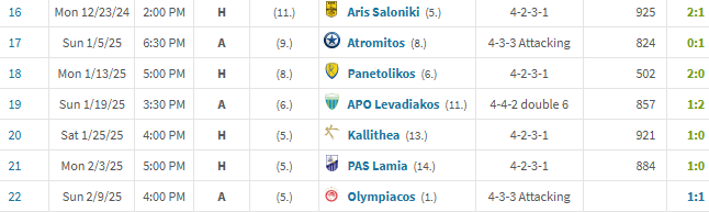 Ο ASTERAS AKTOR διανύει μία εξαιρετική περίοδο, καταγράφοντας αήττητο σερί επτά αγώνων, με απολογισμό πέντε νίκες και δύο ισοπαλίες στο ελληνικό πρωτάθλημα. Η ομάδα του Σάββα Παντελίδη όχι μόνο έχει καταφέρει να διατηρήσει ένα υψηλό επίπεδο απόδοσης, αλλά έχει επιδείξει και εντυπωσιακή αμυντική συνέπεια, δεχόμενη μόλις τρία γκολ σε αυτό το διάστημα. Παράλληλα, η επιθετική της γραμμή έχει αποδειχθεί αποτελεσματική, σκοράροντας συνολικά 10 φορές.