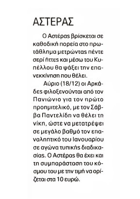 Αστεράτος Τύπος της Τρίτης (17/12)