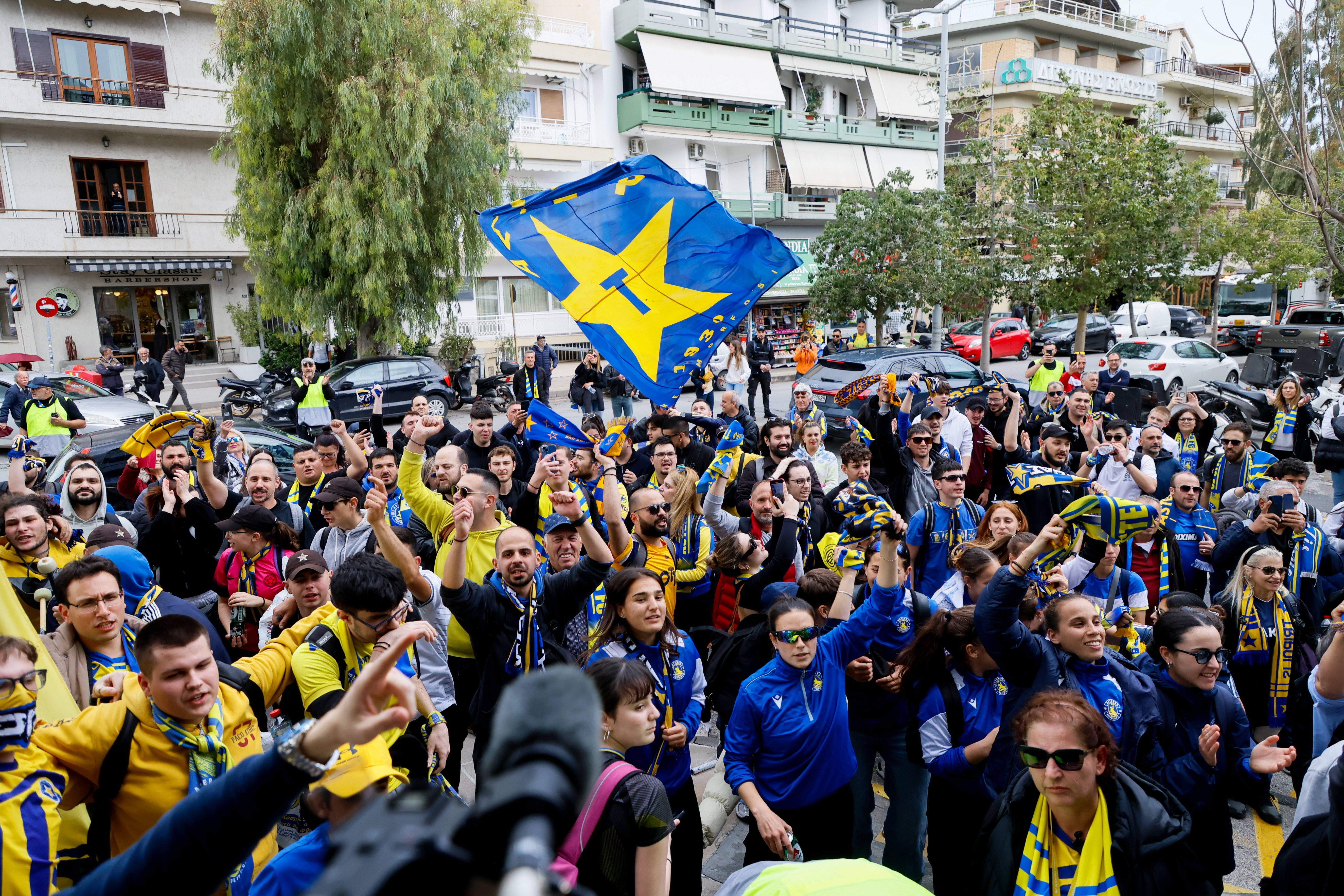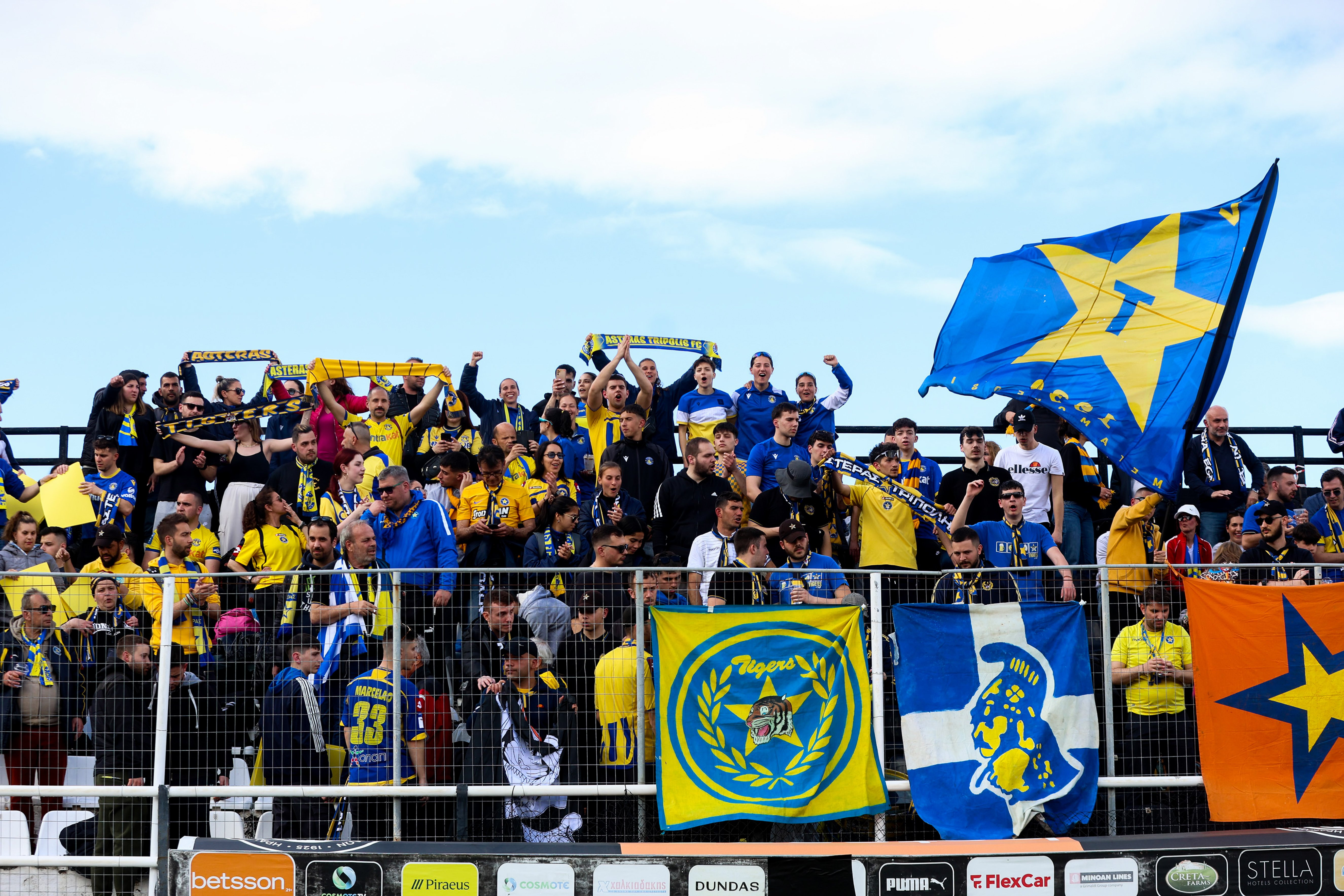 Καθισμένοι διπλά-δίπλα, ειρηνικά και με τον απαιτούμενο ενθουσιασμό υποδέχτηκαν οι οπαδοί τις δύο ενδεκάδες στον αγωνιστικό χώρο, με τους φίλους των Αρκάδων να σηκώνουν μπλε και κίτρινα χαρτιά για να δώσουν χρώμα στη δική τους κερκίδα.