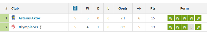 Οι αριθμοί λένε πολλά: ο Ολυμπιακός παραμένει αήττητος στα τελευταία πέντε παιχνίδια του (4 νίκες και 1 ισοπαλία), αλλά οι Αρκάδες, με το απόλυτο των πέντε νικών, έχουν συγκεντρώσει 15 βαθμούς και βρίσκεται στην κορυφή της του πίνακα με τις πιο φορμαρισμένες ομάδες. Το συγκρότημα του Παντελίδη έχει δείξει εντυπωσιακή αμυντική συνοχή και εκμεταλλεύεται στο έπακρο τις ευκαιρίες της στην επίθεση, έχοντας σκοράρει 7 γκολ ενώ έχει δεχτεί μόλις 1 στα τελευταία ματς.