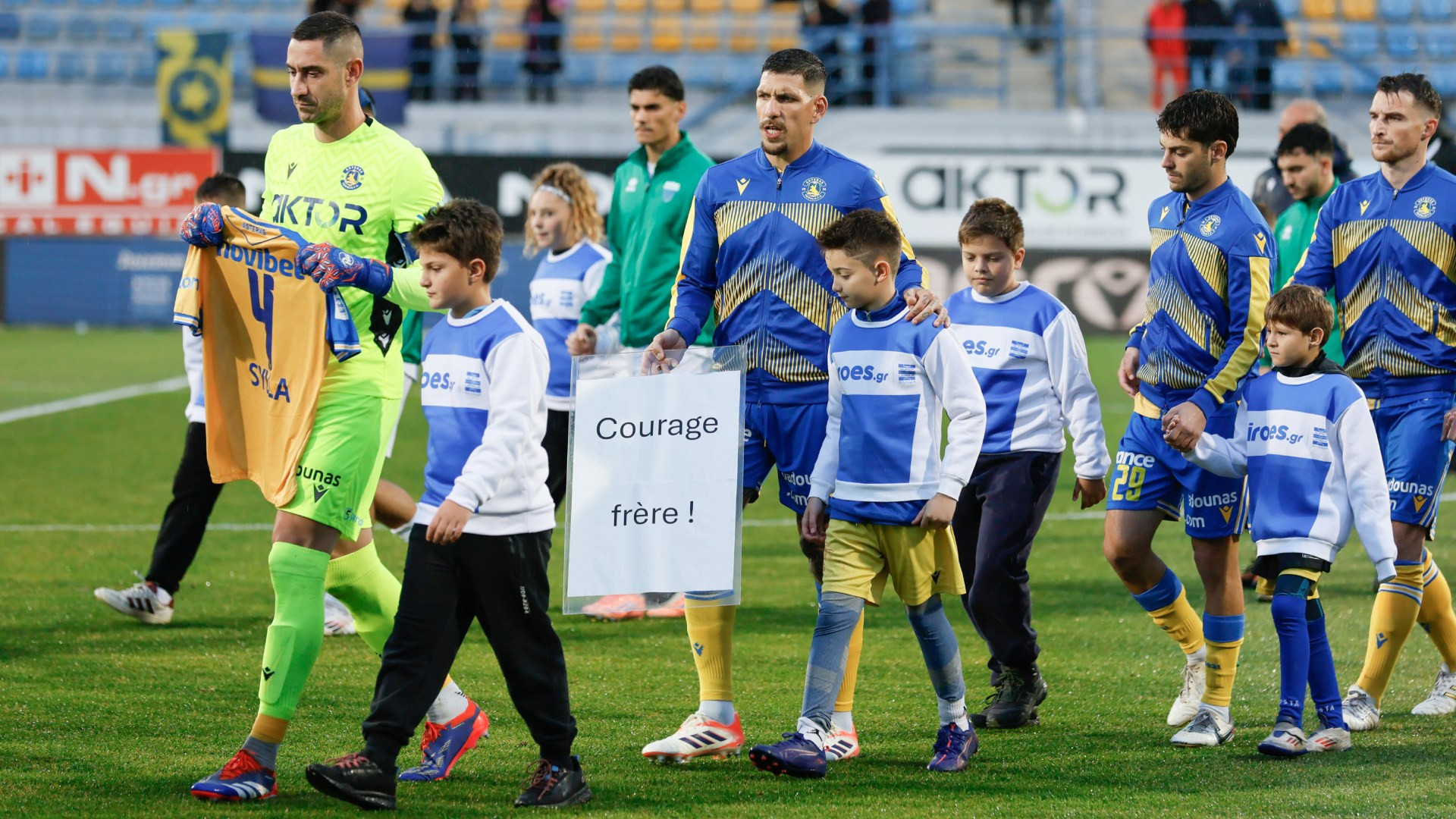 Κατά την είσοδο τους στον αγωνιστικό για το ματς με το Λεβαδειακό οι παίκτες του ΑSTERAS AKTOR έστειλαν μήνυμα στήριξης στον Σιλά για την απώλεια της συζύγου του.